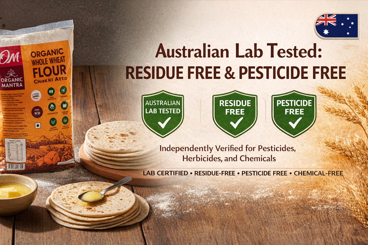 Every batch of Organic Mantra Chakki Atta is independently tested in Australian laboratories to ensure it is: