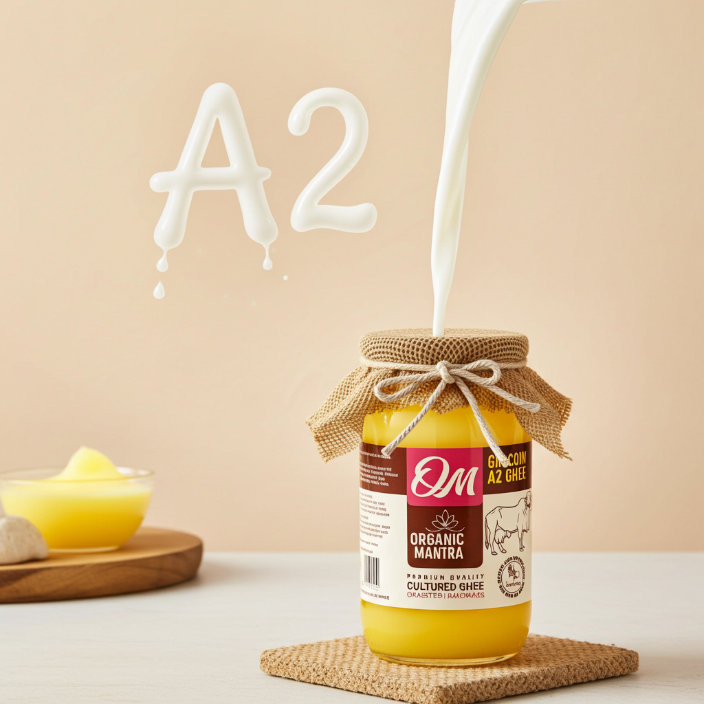 Organic Mantra A2 Bilona Gir Cow Ghee is a traditionally handcrafted cultured ghee made from curd using the Ayurvedic Bilona hand-churning method. It is prepared in small batches without cream separation, additives, or industrial shortcuts.